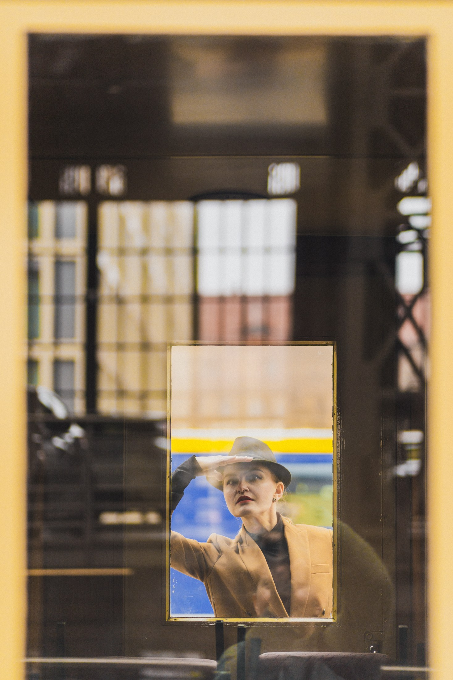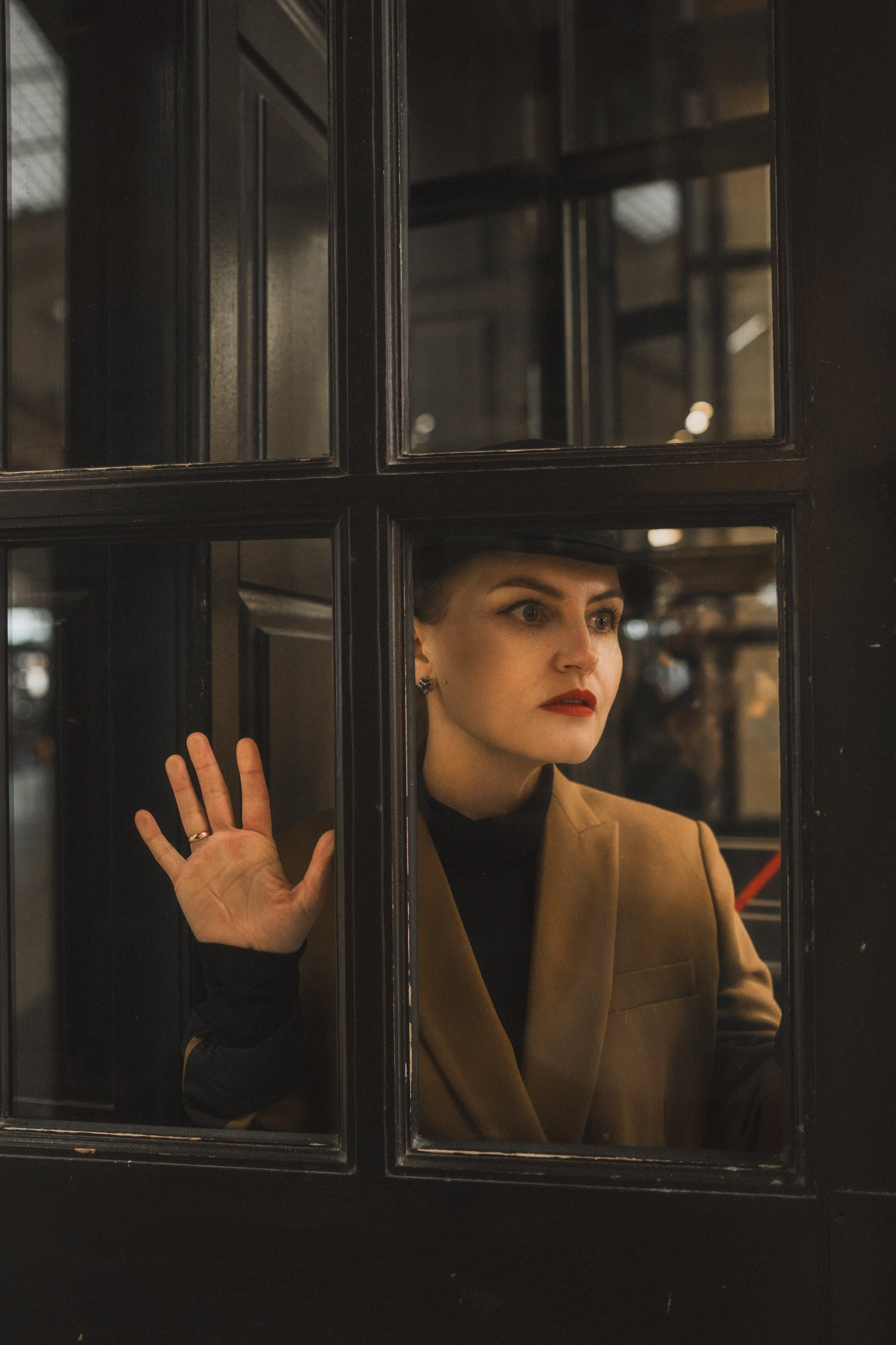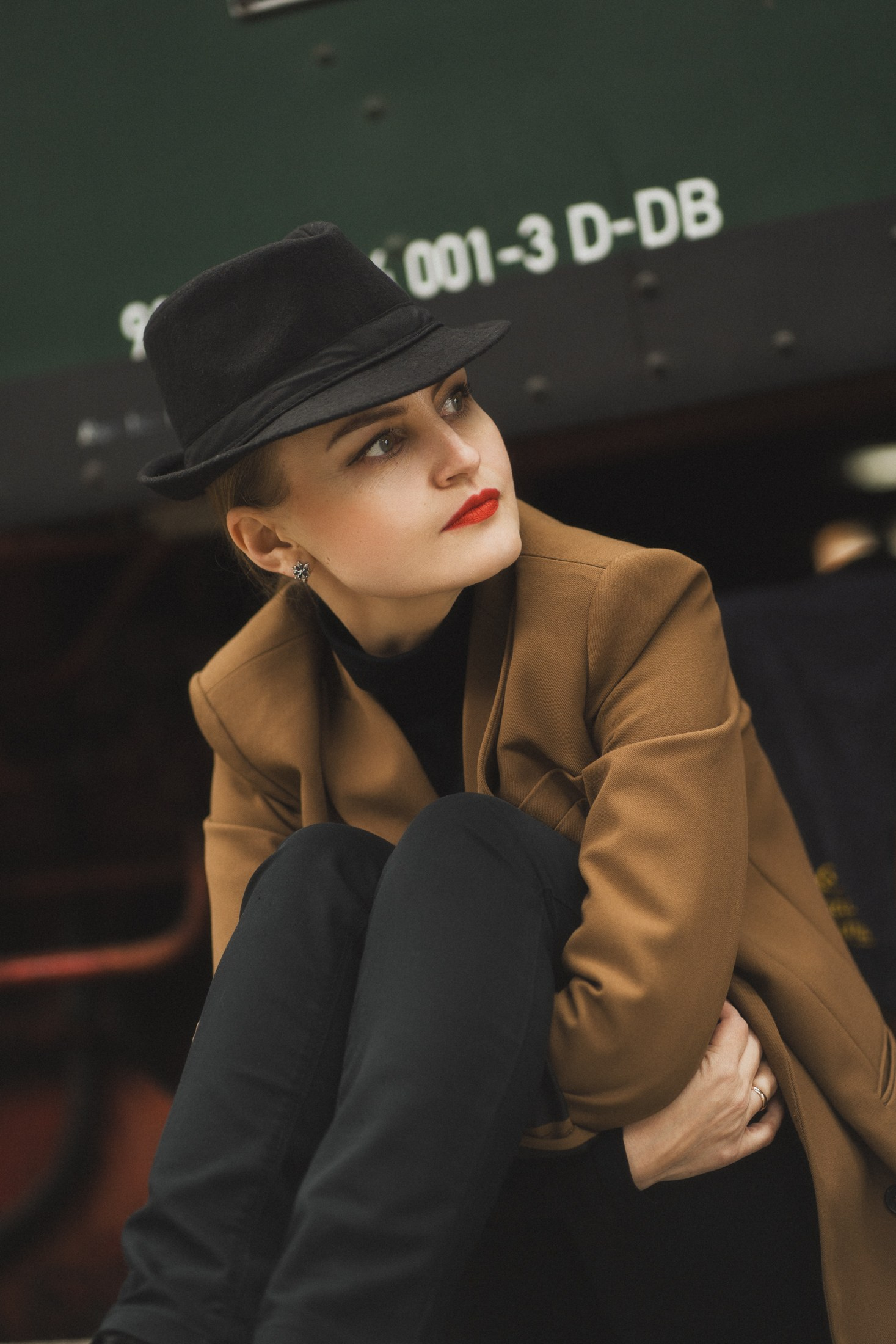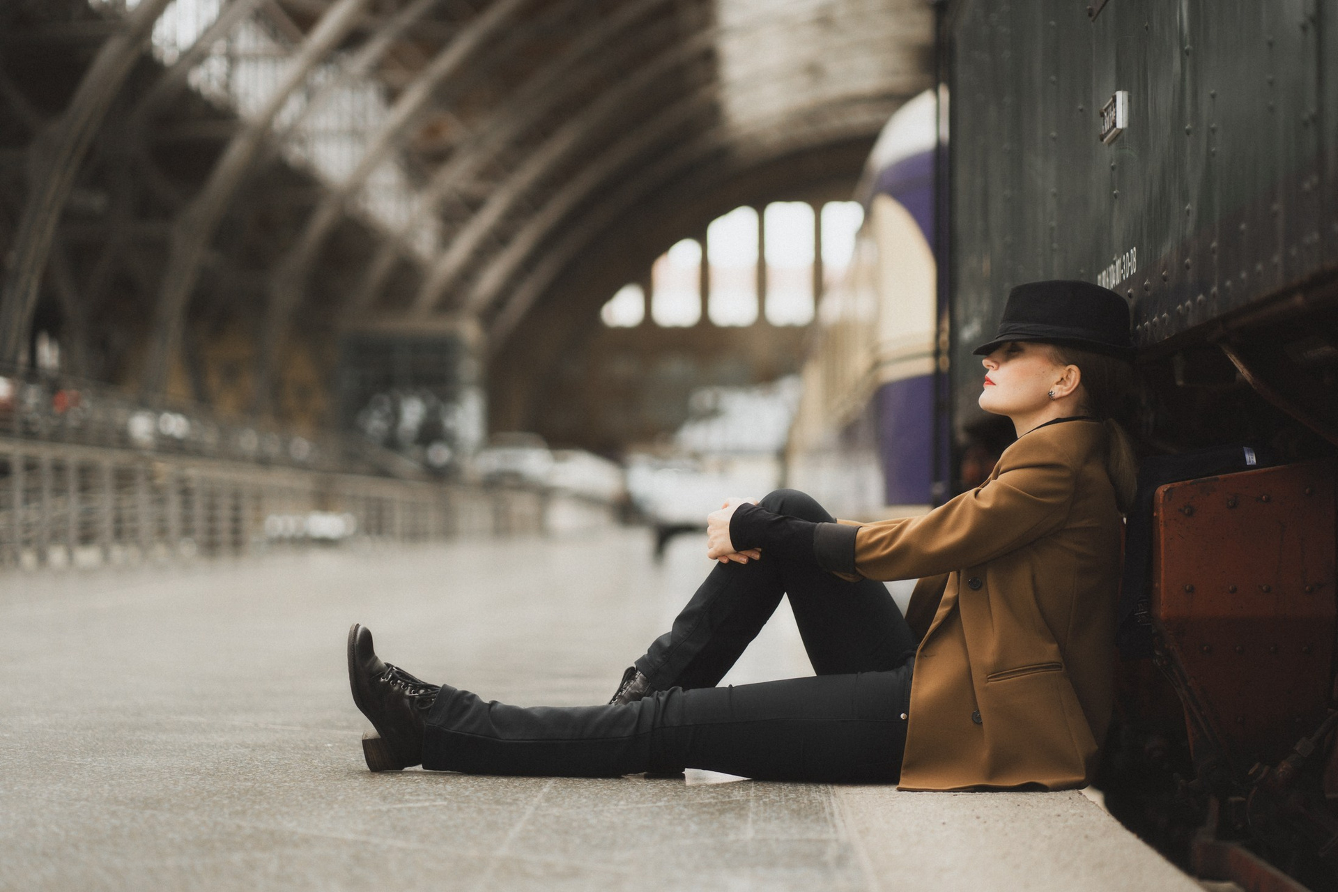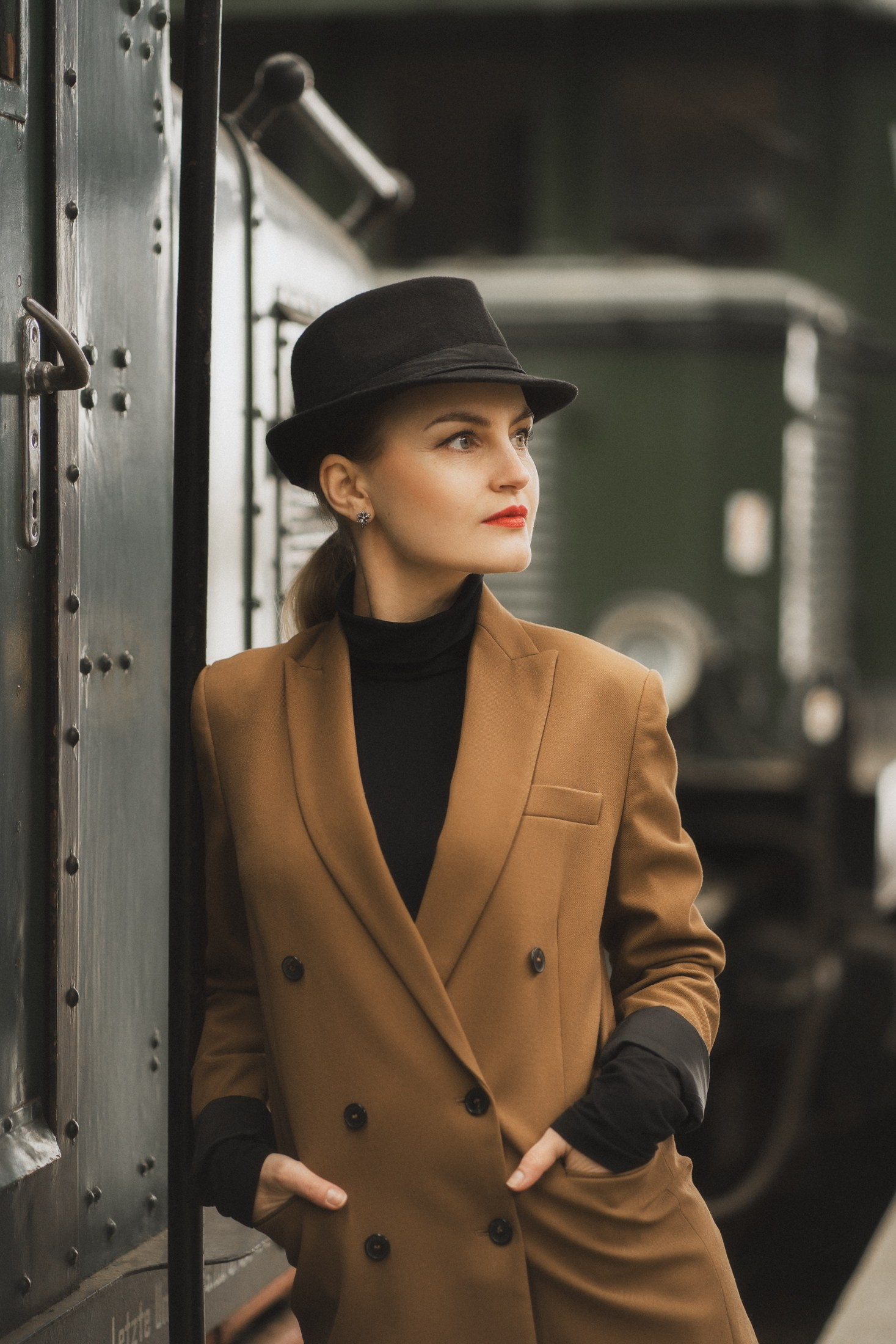 Cineastische Portraitserie mit Lydia am Leipziger Bahnhof – elegante Retro-Atmosphäre und Reisegefühl