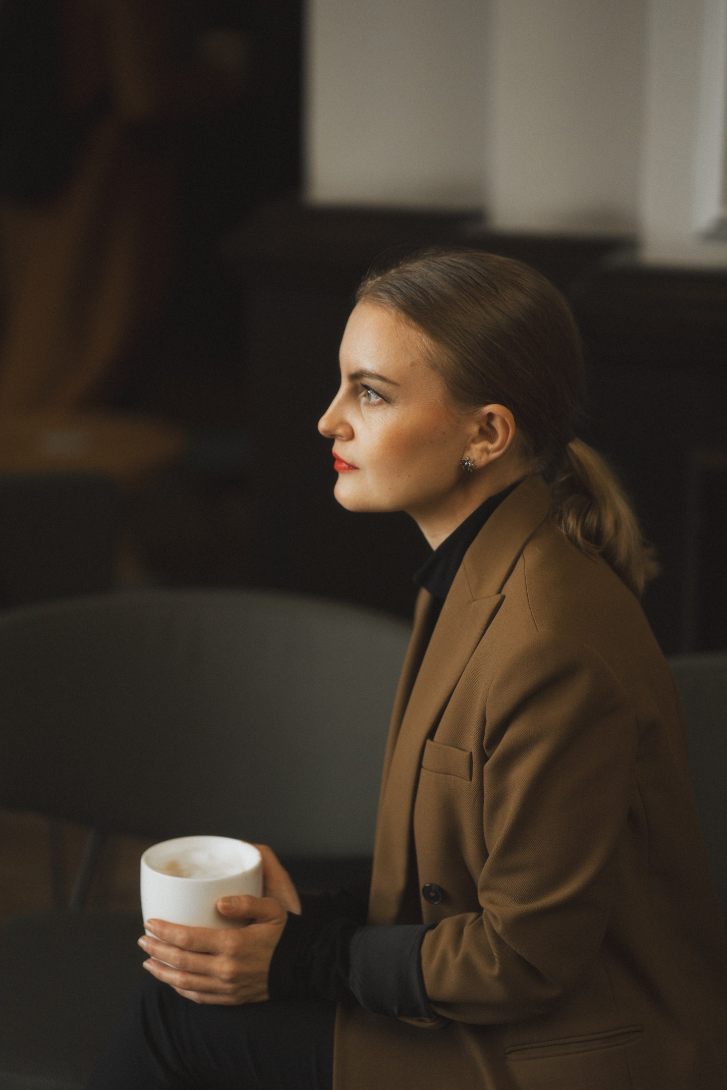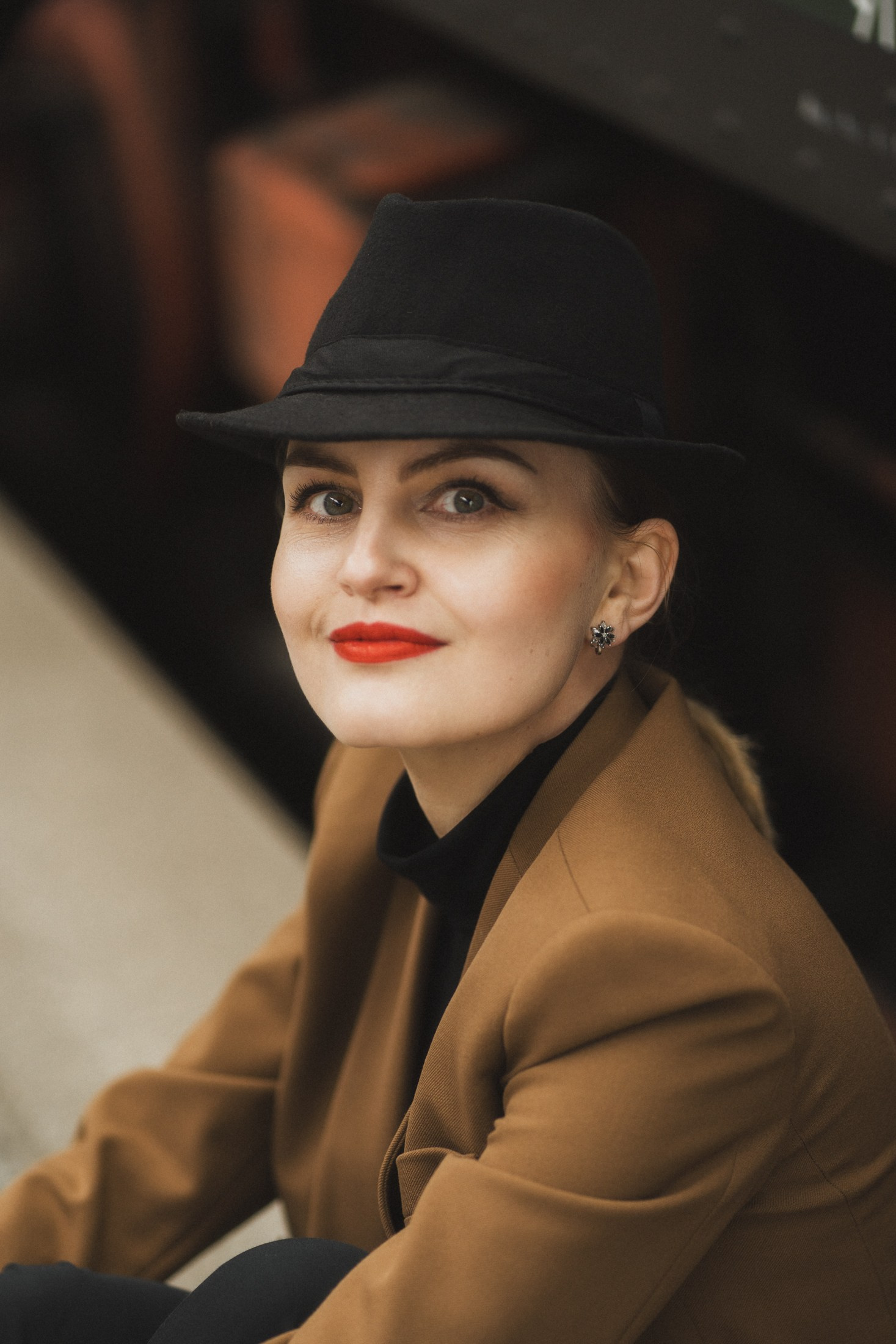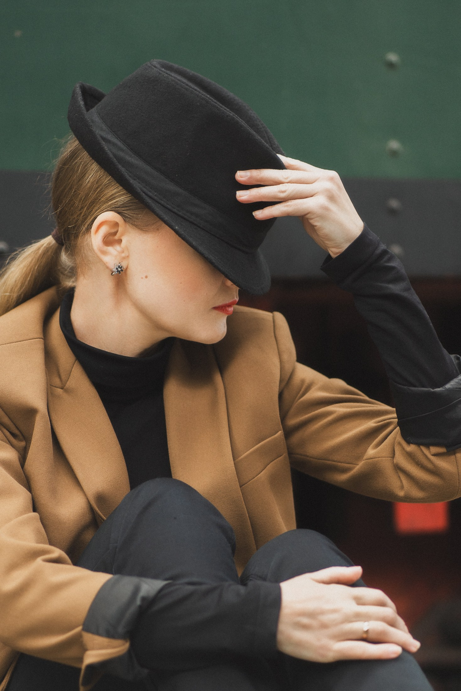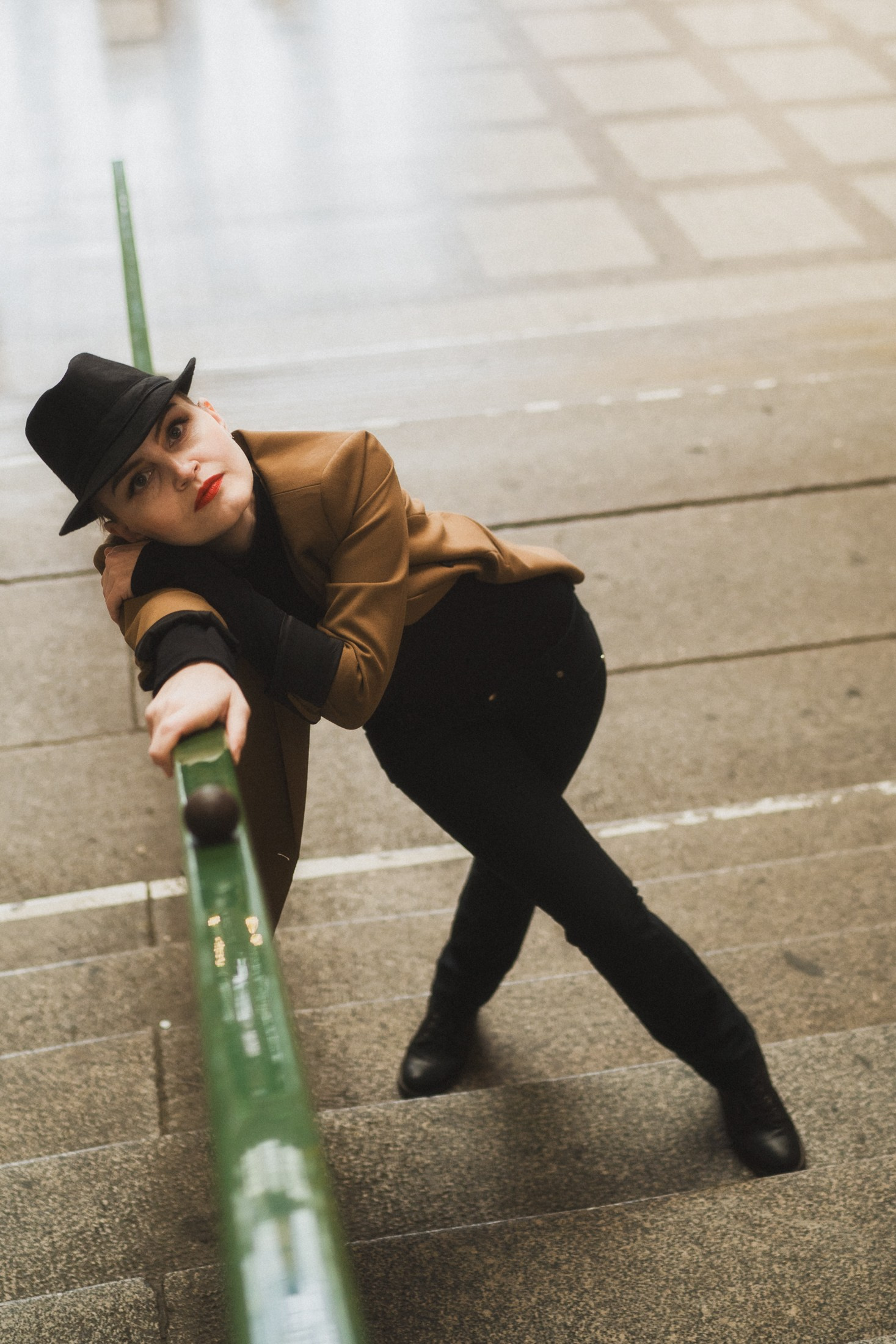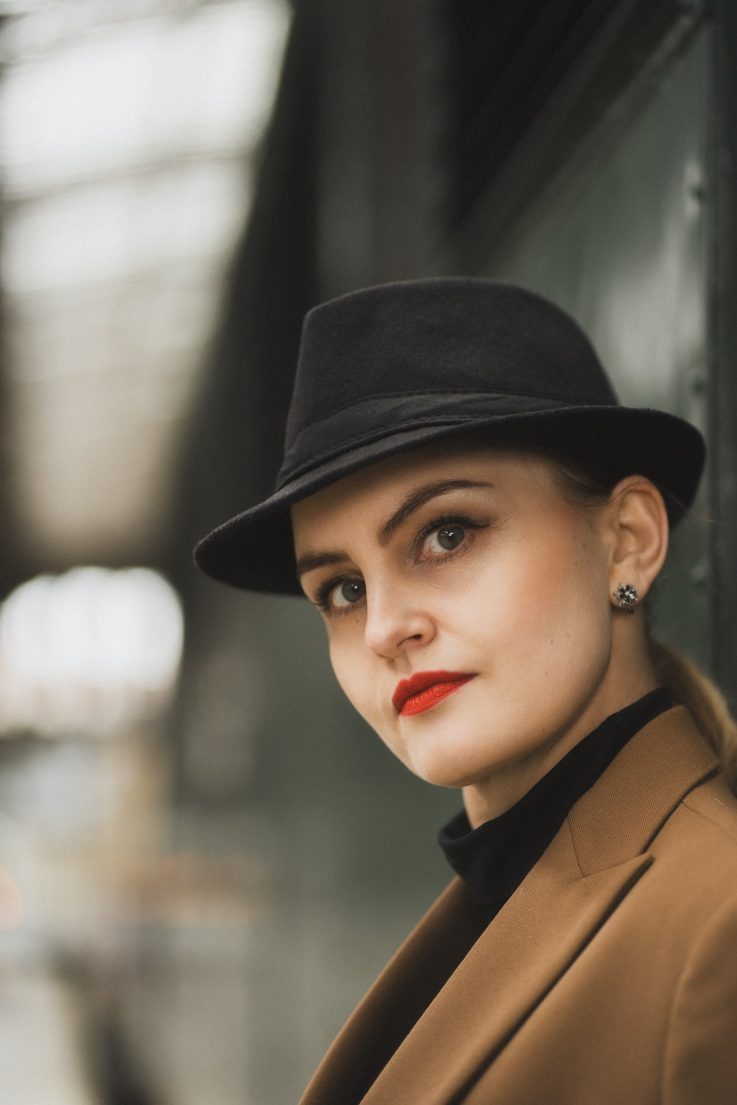 Cineastische Portraitserie mit Lydia am Leipziger Bahnhof – elegante Retro-Atmosphäre und Reisegefühl